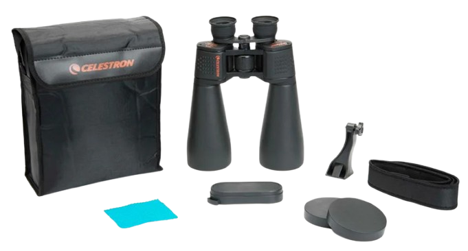 La serie de binoculares SkyMaster de Celestron es ideal para la visualización astronómica o para uso terrestre, especialmente para observar a larga distancia. Cada modelo SkyMaster presenta prismas BAK-4 de alta calidad y óptica multirevestida para un mejor contraste. Celestron ha diseñado los modelos SkyMaster para cumplir con las demandas especiales de sesiones astronómicas o terrestres. Son ideales para las personas que usan lentes. Incluye estuche y adaptador para tripié.