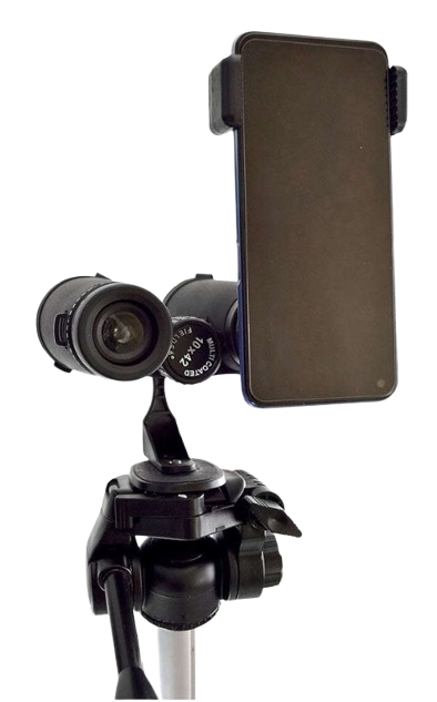Lentes con recubrimiento green multicapa, cordón para colgar, adaptador para tripié y adaptador para celular.
