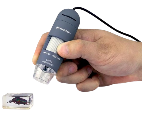 El microscopio digital de mano Celestron Deluxe de nivel intermedio es un microscopio de bajo consumo y fácil de usar.